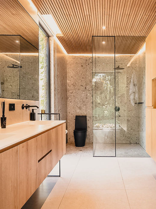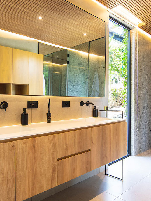 Se preparó un acabado especial de alta resistencia a la constante exposición de los rayos UV, logrando un color 100% personalizado que permitía la integración de las diferentes especies de maderas creando una sinergia en el diseño.