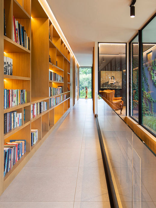 El proyecto exigía fabricar mobiliario built in en teca y roble, integrando mobiliario suelto, bibliotecas, recubrimiento de paredes y puertas, con la exigencia del cliente final de usar sólamente ensambles tradicionales, un detalle poco solicitado en proyectos residenciales. reservado sólo para los más exigentes.